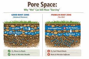 Healthy soil is a balance of solids and pore space — and that pore space needs to be a mix of water + air.