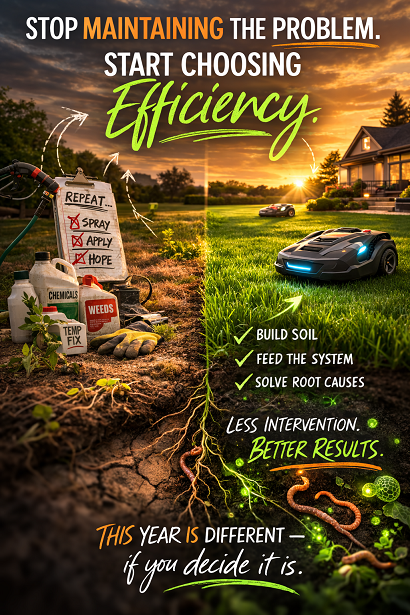 When I talk about efficiency in lawn care, I don’t mean cheap. I don’t mean fast. I mean doing things that actually move the needle — building soil biology, feeding the system, solving root causes instead of chasing surface symptoms.