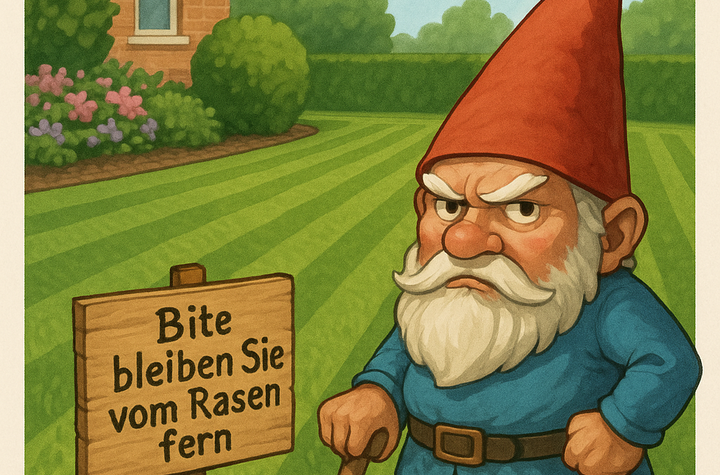 You can tell a “Gnome Standard” lawn on approach. The edges look machine-milled, the stripes are straight enough to land a small aircraft, and the grass blades stand at attention like they’ve had a briefing at 0600. Somewhere, a hose reel clicks with military precision. This is not an accident. This is a system.