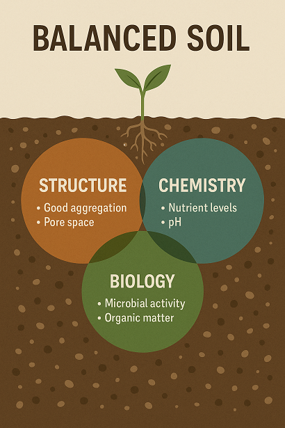 When most people think of soil, they picture plain brown dirt—just a medium to hold plants in place. But soil is a living engine. It’s a dynamic, biological, chemical, and physical system, and when it’s “balanced,” that engine hums with efficiency. Balanced soil isn’t about throwing down more fertilizer or watering harder. It’s about creating harmony among the three key elements: structure, chemistry, and biology.